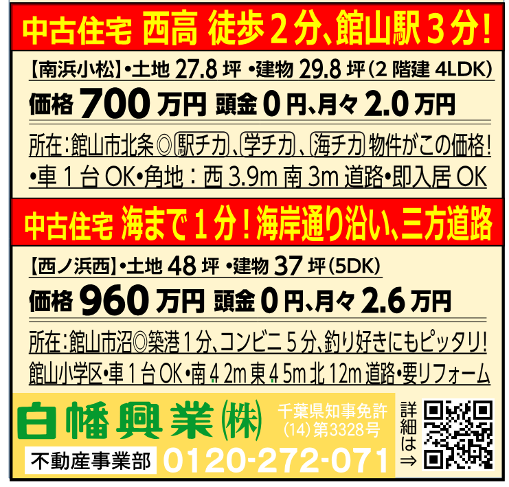 ★中古住宅情報★西高徒歩2分、館山駅3分!!