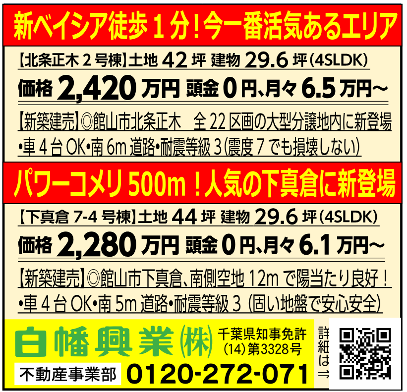 ★新築建売情報★館山市、南房総市、鴨川市。移住、セカンドハウスにも♪